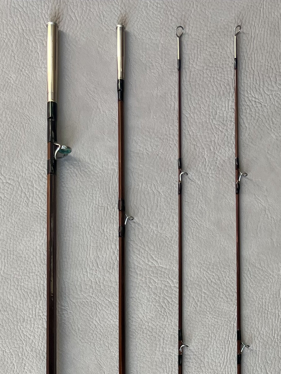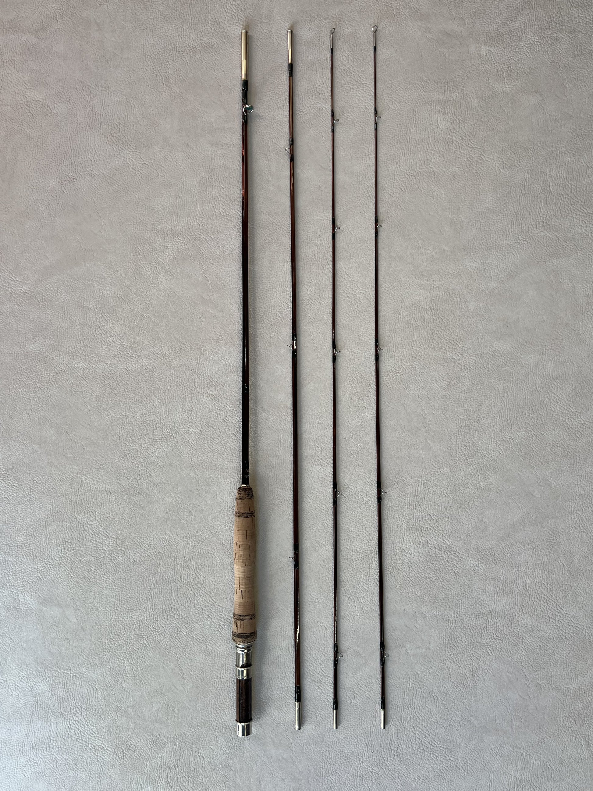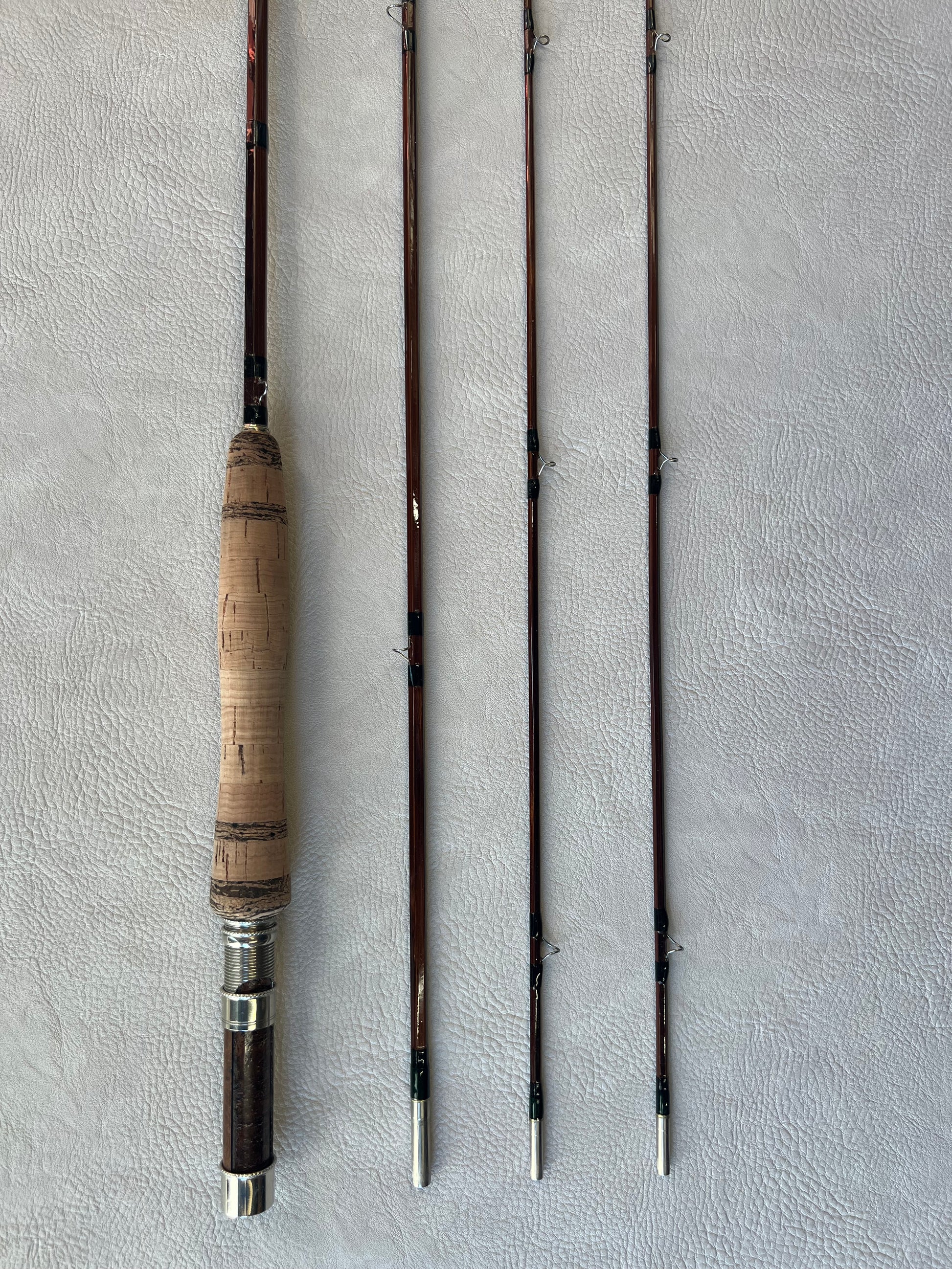 Fast action rod with nickel down locking reel seat, snake guides silk wraps and turned cork grip. Price does not reflect shipping.